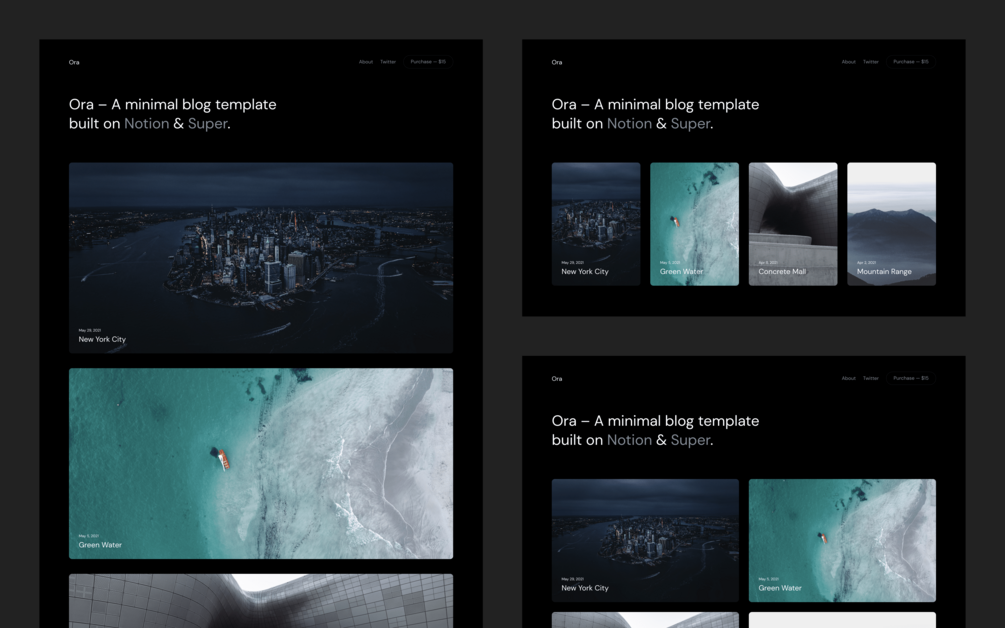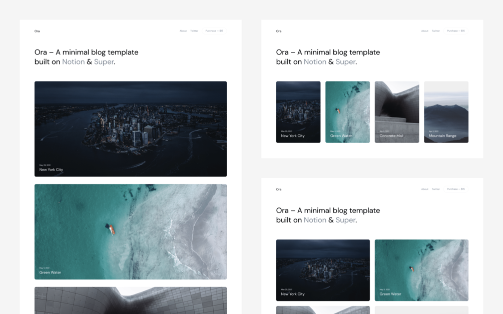 Meet Ora – A minimal blog template powered by Notion & Super.